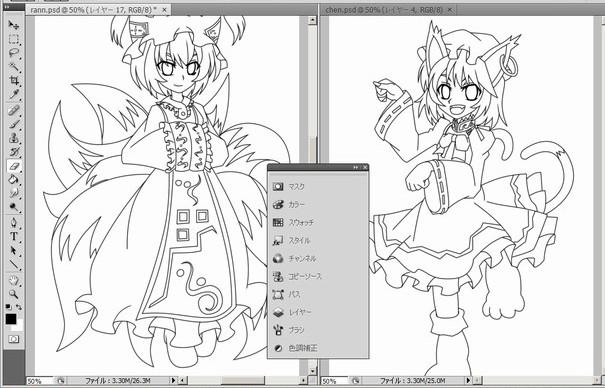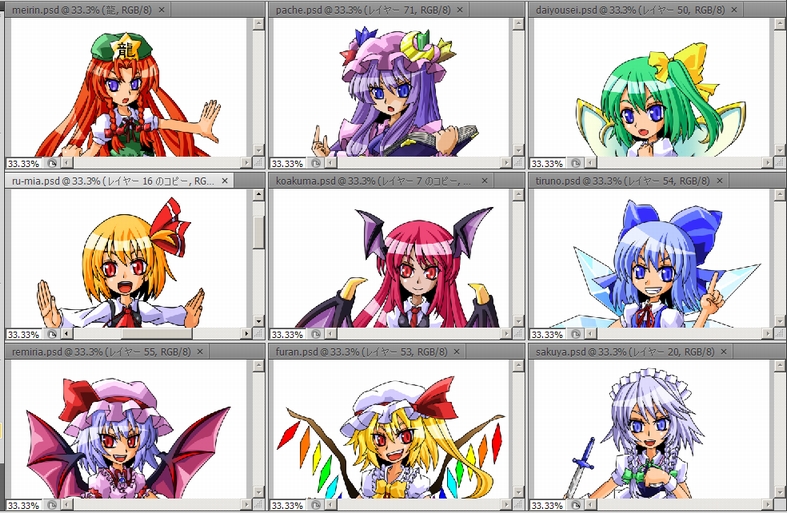 ゆゆこ、ゆかりん、ちぇんのラフはさっくり上がった